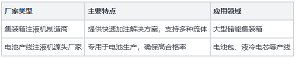 行业内主要包括集装箱注液机和电池产线注液机,各自有不同的应用领域和优势。